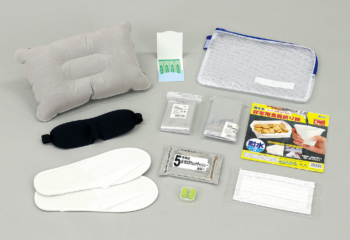 防災士が監修した防災セット!枕と寝袋入りで1泊できるセットです。コンパクトなポーチタイプなので、ちょっとした隙間に保管ができます。
