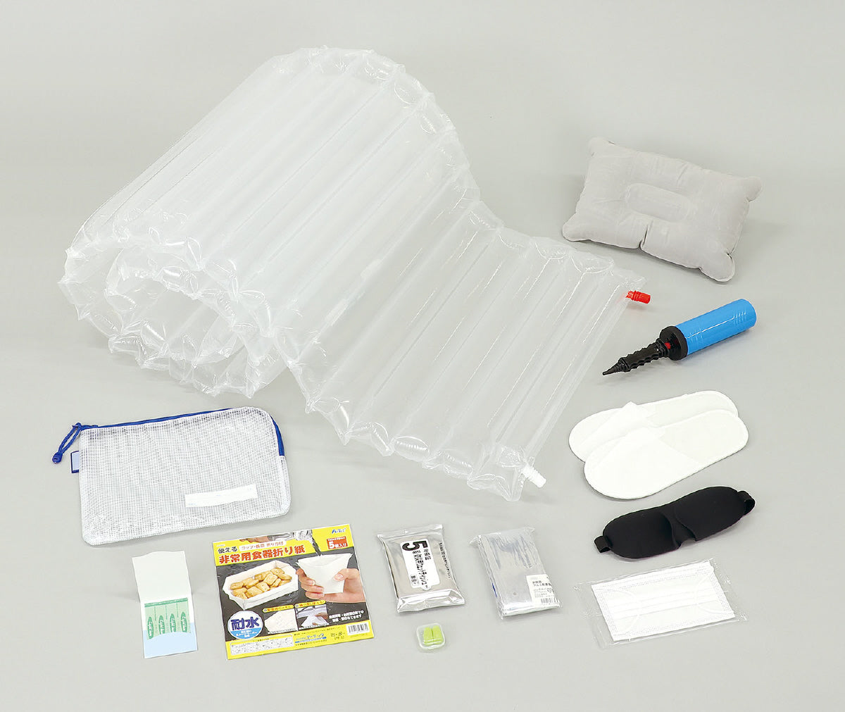 防災士が監修した防災セット!エアーマット入りで疲れが取れるセットです。コンパクトなポーチタイプなので、ちょっとした隙間に保管ができます。