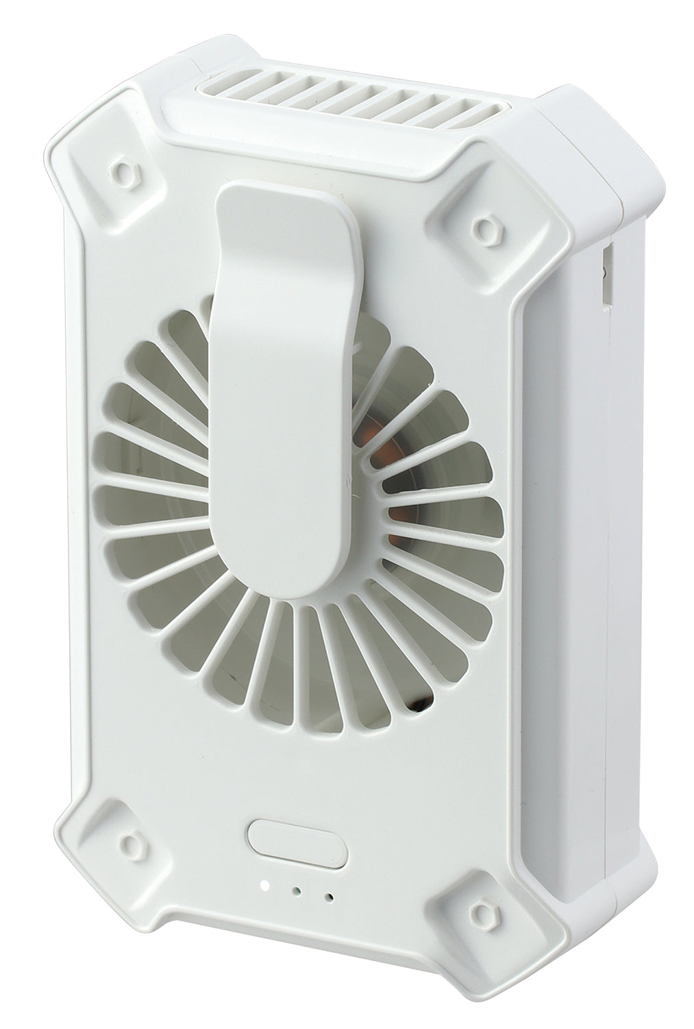 表と裏のクリップ付で服の中に風を送れるポータブル扇風機!