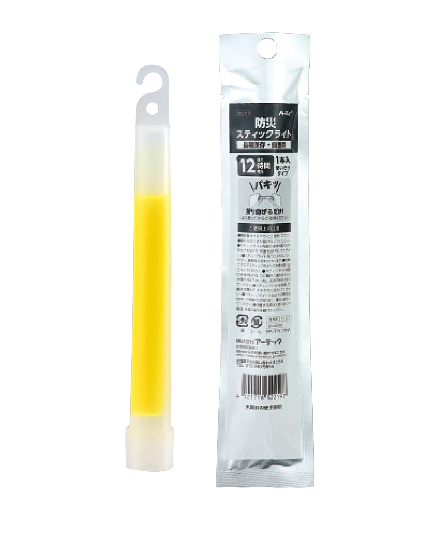 折り曲げるだけで簡単発光!火や電力不要!防災備蓄用に最適です発光色/黄色、最大12時間発光、工場保証期間/製造より5年、1本使い切りタイプ