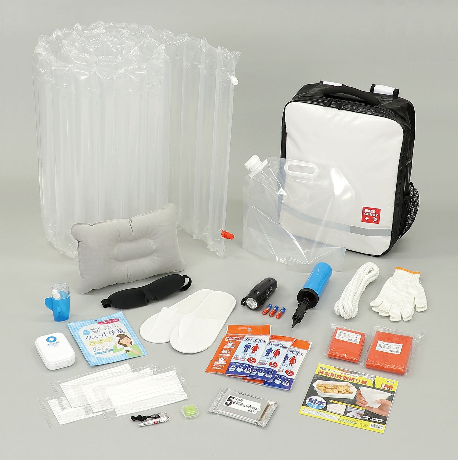 防災士が監修した防災セット!トイレやマスクが3回分ついた大容量セットです。日常使いにも溶け込むデザインの大容量リュックタイプ。