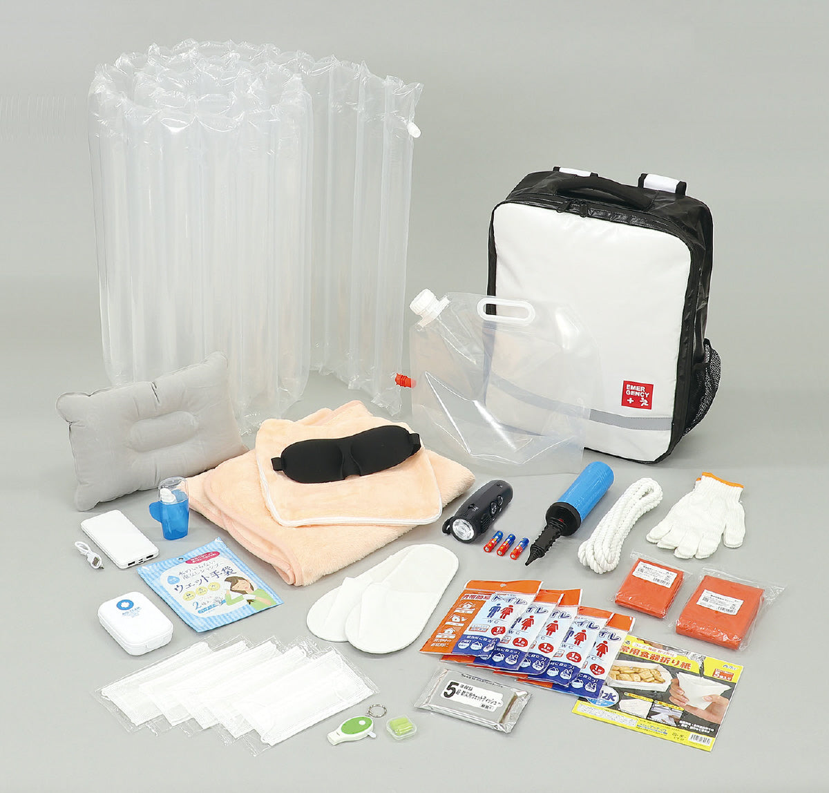 防災士が監修した防災セット!これさえあれば安心のフルセットです。日常使いにも溶け込むデザインの大容量リュックタイプ。