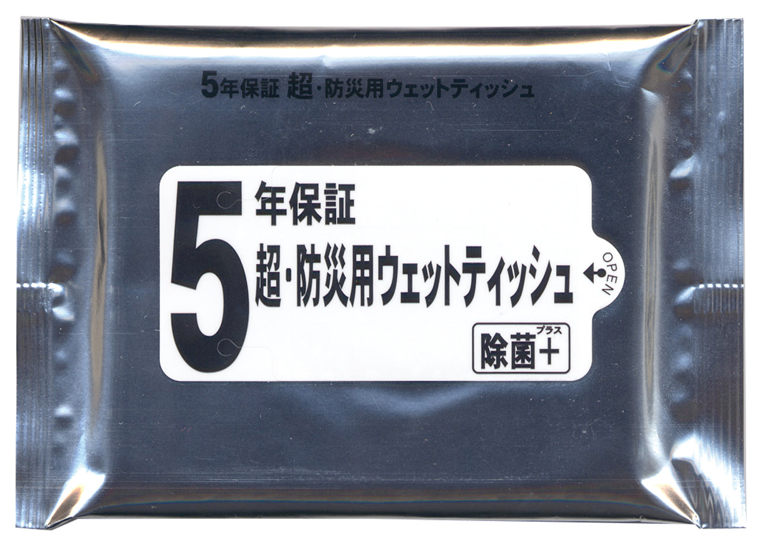 業界最長、「5年保証」の防災用のウェットティッシュ
